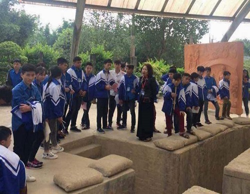 Các em học sinh trường THPT huyện Điện Biên đi thăm quan các điểm di tích lịch sử