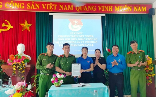 Tại buổi lễ, Đoàn công an thị xã và Chi đoàn trường Mầm non Bản Lé thống nhất ký kết với các nội dung như: Phối hợp tổ chức các buổi tọa đàm, nói chuyện chuyên đề, truyền thống với các chủ đề liên quan đến các ngày lễ lớn của dân tộc của ngành Giáo dục và Công an, truyền thống vẻ vang của dân tộc, của Đảng, của Đoàn; tổ chức tuyên truyền, giáo dục cho đoàn viên thanh niên chấp hành tốt các chủ trương chính sách của Đảng và pháp luật của nhà nước; phối hợp, hỗ trợ tổ chức các hoạt động đoàn của hai đơn vị, đặc biệt là các hoạt đồng của phong trào thanh niên tình nguyện, bảo vệ môi trường, giao lưu văn hóa, văn nghệ, thể thao, đồng hành với thanh niên rèn luyện và phát triển kỹ năng trong cuộc sống, nâng cao thể chất, đời sống văn hóa tinh thần...