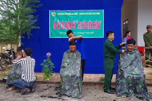 ĐVTN Bộ đội Biên phòng tỉnh phối hợp cùng ĐVTN địa phương tổ chức cẳt tóc