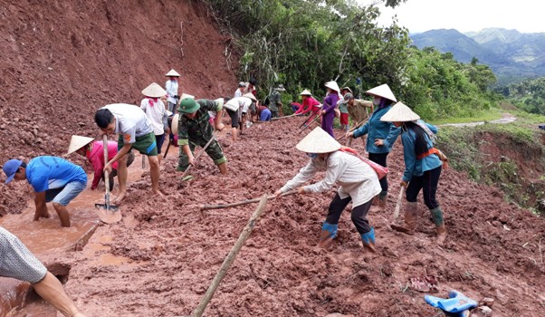 Đoàn viên, thanh niên Bộ đội Biên phòng tỉnh cùng nhân dân khắc phục hậu quả mưa lũ