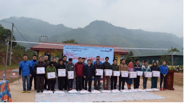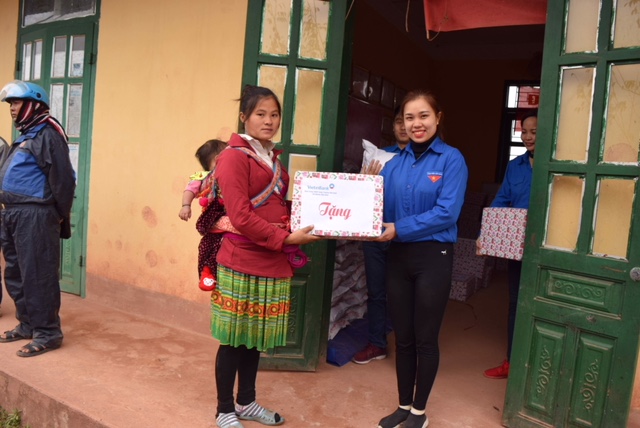 Đoàn thanh niên Chi nhánh Vietinbank Điện Biên tặng quà cho các hộ gia đình có hoàn cảnh khó khăn