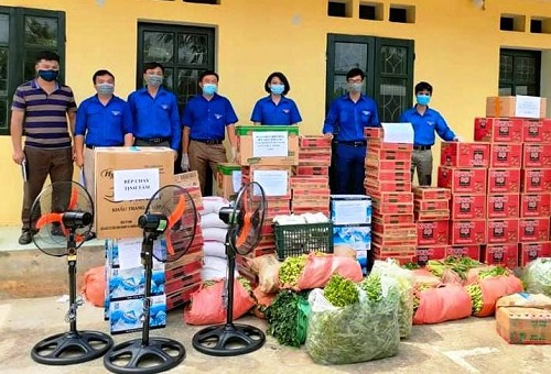 ĐVTN huyện Điện Biên trao tặng các nhu yếu phẩm cho điểm cách ly Covid-19 tại xã Mường Nhà.