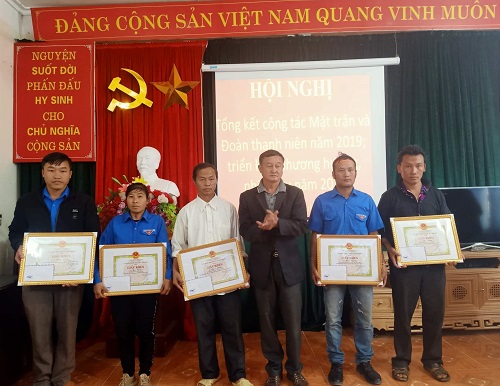 UBND xã trao khen thưởng năm 2019 cho cán bộ, đoàn viên thanh niên.