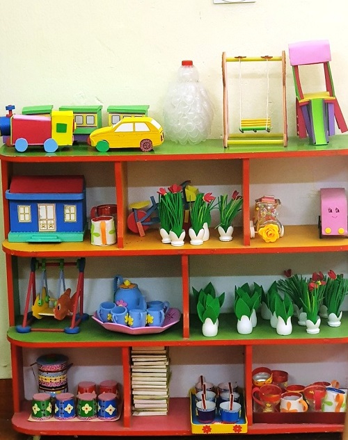 và đồ trang trí không gian lớp học của trường mầm non.