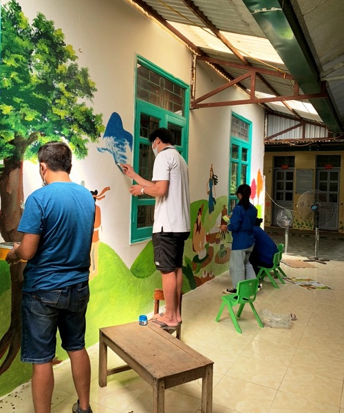 Không gian đẹp cho em được tuổi trẻ nhà trường vẽ trên những bức tường khổ lớn