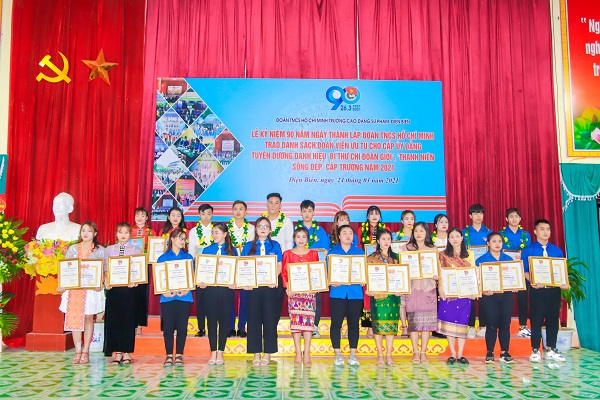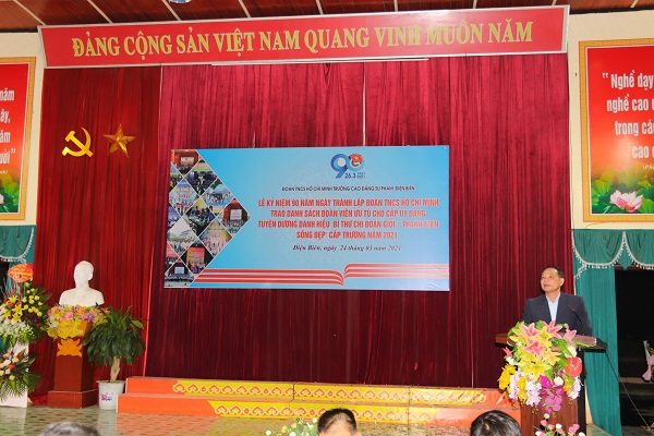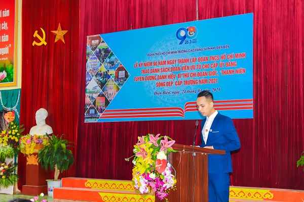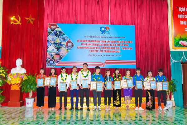 Tối ngày 24/3/2021, tại Hội trường trường CĐSP Điện Biên, Đoàn trường CĐSP Điện Biên đã long trọng tổ chức Lễ Kỷ niệm 90 năm ngày thành lập Đoàn (26/3/1931-26/3/2021), trao danh sách Đoàn viên ưu tú cho cấp ủy Đảng, tuyên dương danh hiệu “Bí thư Chi đoàn giỏi”, “Thanh niên sống đẹp cấp trường” năm 2021.