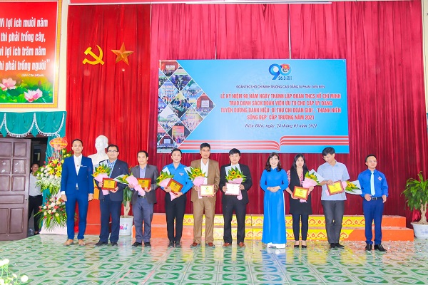 Nhân dịp này, để ghi nhận sự cố gắng, nỗ lực của các bạn đoàn viên, Đoàn trường CĐSP Điện Biên đã trao tặng danh hiệu “Bí thư Chi đoàn giỏi” cấp trường năm 2021 cho 18 đoàn viên. Cũng tại buổi Lễ, 14 đoàn viên tham gia hiến máu từ 04 lần trở lên đã được Ban Chấp hành Đoàn trường trao tặng danh hiệu “Thanh niên sống đẹp”.