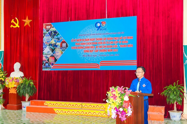 Đồng chí Hoàng Văn Định – Phó Bí thư Đoàn Trường đọc diễn văn kỷ niệm 90 năm ngày thành lập Đoàn TNCS Hồ Chí Minh