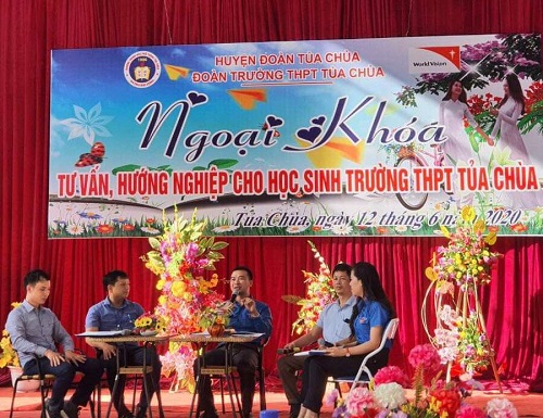 Ngày 12/6/2020, Đoàn trường THPT Tủa Chùa tổ chức buổi Ngoại khóa tư vấn hướng nghiệp cho đoàn viên học sinh. Tham dự buổi Ngoại khóa có đồng chí Phạm Văn Lợi - Phó Hiệu trưởng nhà trường, đồng chí Đặng Tiến Công - Phó Bí thư Huyện đoàn, đại diện Trung tâm GDNN-GDTX huyện, Chương trình vùng Tủa Chùa, các thầy cô giáo và đông đảo các em học sinh trường THPT Tủa Chùa.