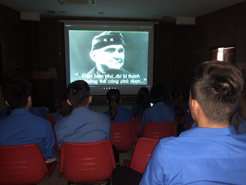 Xem phim tư liệu tại bảo tàng chiến thắng Điện Biên Phủ.