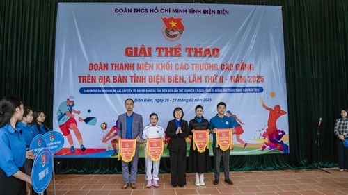Trưởng ban tổ chức, trao tặng cờ lưu niệm cho các trường tham gia. Giải thể thao Đoàn Thanh niên khối các trường Cao đẳng tỉnh Điện Biên lần thứ II, năm 2025 không chỉ là hoạt động thi đấu mà còn là dịp để các đoàn viên thanh niên giao lưu, học hỏi, thắt chặt tình đoàn kết giữa các trường. Sự kiện này góp phần quan trọng vào việc khuyến khích phong trào rèn luyện thể dục thể thao trong sinh viên, giúp nâng cao thể lực, đời sống tinh thần, từ đó hỗ trợ cho việc học tập và công tác đoàn.