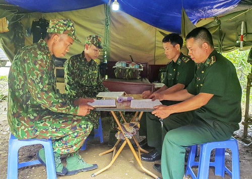 Chi đoàn Đồn Biên phòng Mường Pồn tổ chức học tập chính trị tại chốt kiểm soát,