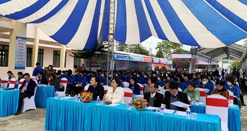 Toàn cảnh chương trình. Hội chợ việc làm năm 2023 thu hút 3000 đoàn viên thanh niên và người lao động tham gia. Hội chợ việc làm cấp huyện được tổ chức nhằm giúp cho người lao động bị thất nghiệp, lao động chưa có việc làm, việc làm không ổn định thu nhập thấp, lao động thanh niên, người khuyết tật, người dân tộc thiểu số, phụ nữ nông thôn, sinh viên tốt nghiệp và sắp tốt nghiệp ra trường có nhu cầu tìm kiếm việc làm, học nghề, tìm được việc làm ổn định với mức thu nhập cao; tăng tỷ lệ sinh viên có việc làm sau khi tốt nghiệp, đồng thời cũng tạo môi trường thuận lợi cho các Công ty, Doanh nghiệp trong và ngoài tỉnh tuyển chọn được nguồn nhân lực trẻ, chất lượng bổ sung đáp ứng nhu cầu chiến lược phát triển kinh doanh của đơn vị mình. Thông qua Hội chợ việc làm người lao động được tiếp cận, trao đổi thông tin, tìm kiếm việc làm, định hướng học nghề phù hợp với nhu cầu và khả năng của người lao động.