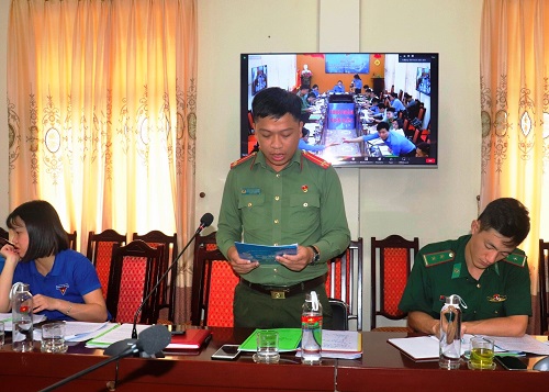 Đại diện Đoàn Thanh niên Công an tỉnh trình bày, chia sẻ các hoạt động chuyển đổi số tại đơn vị.