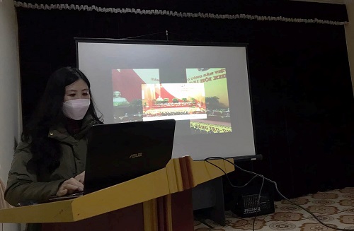 Giảng viên Đỗ Thị Vân Anh - Phó giám đốc Trung tâm Chính trị thành phố triển khai nội dung