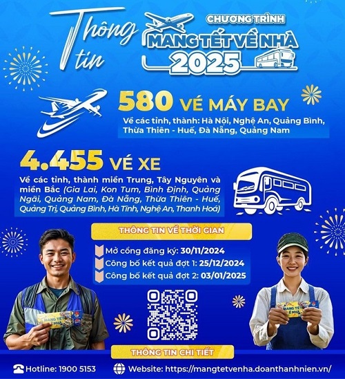 Trao 4.455 vé xe về các tỉnh, thành miền Trung, Tây Nguyên và miền Bắc, gồm: Gia Lai, Kon Tum, Bình Định, Quảng Ngãi, Quảng Nam, Đà Nẵng, Thừa Thiên - Huế, Quảng Trị, Quảng Bình, Hà Tĩnh, Nghệ An, Thanh Hoá.