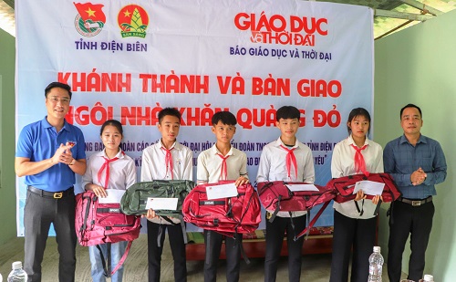 Đại diện Tỉnh đoàn Điện Biên, Báo Giáo dục & Thời đại cùng các đơn vị tài trợ khánh thành nhà Khăn quàng đỏ hỗ trợ em Lường Thị Tuyết. Sau khi khánh thành và bàn giao nhà Khăn quàng đỏ cho em Lường Thị Tuyết, Ban Thường vụ Tỉnh đoàn, Hội đồng đội tỉnh cũng đã trao quà cho 5 em học sinh khó khăn trên địa bàn. Mỗi phần quà trị giá 500 nghìn đồng và balo đựng sách vở.