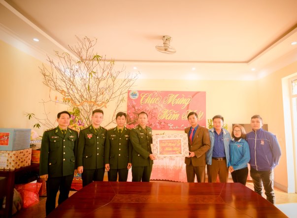 Đồng chí Lê Ngọc Hoàn, Ủy viên BCH Tỉnh đoàn Điện Biên, Phó Bí thư phụ trách huyện Đoàn Điện Biên thăm và chúc Tết tại tại Đồn Biên Phòng Pa Thơm.