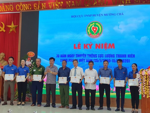 Nhân dịp này, Ủy ban Nhân dân huyện Mường Chà đã tặng giấy khen cho 04 tập thể và 11 cá nhân vì có nhiều đóng góp cho hoạt động của Hội Cựu TNXP huyện; quỹ “Đền ơn đáp nghĩa” trao tặng 20 xuất quà trị giá 6.000.000 đồng cho hội viên hội cựu TNXP có hoàn cảnh khó khăn và thân nhân Cựu TNXP trên địa bàn huyện./.