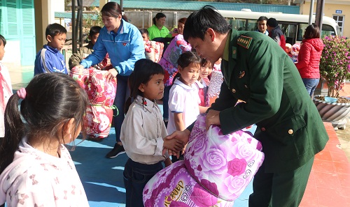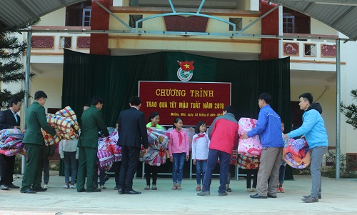 Trong 02 ngày 28, 29/01/2018, Huyện đoàn Điện Biên phối hợp với Phòng Lao động Thương binh Xã hội huyện Điện Biên; Đồn Biên Phòng Mường Nhà; Viettel Điện Biên; Lữ Đoàn 82 Quân khu 2 trao tặng quà Tết Nguyên đán Mậu Tuất 2018 cho 300 em học sinh có hoàn cảnh đặc biệt khó khăn tại xã Na Tông, Mường Nhà, Nà Nhạn thuộc huyện Điện Biên. Tham dự Chương trình trao tặng quà có đồng chí Hà Văn Phiêng, Ủy viên Ban Thường vụ, Phó Chủ tịch UBND huyện Điện Biên; đồng chí Trần Văn Bốn, huyện ủy viên, Trưởng Phòng LĐTB & XH huyện Điện Biên.