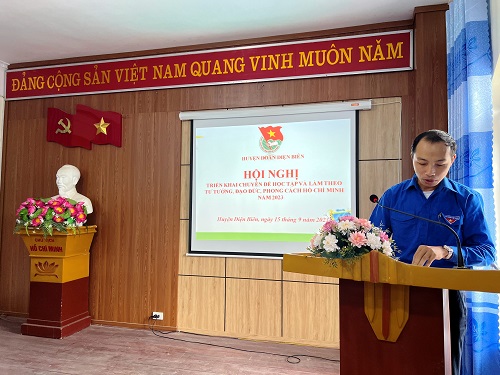 Thực hiện chương trình công tác Đoàn và phong trào TTN huyện năm 2023, Sáng ngày 15/9/2023, tại Hội trường khối Đoàn thể huyện Điện Biên, Ban Thường vụ Huyện đoàn tổ chức Hội nghị triển khai chuyên đề "học tập và làm theo tư tưởng, đạo đức, phong cách Hồ Chí Minh năm 2023".