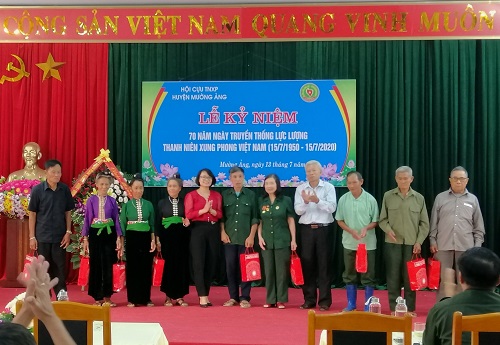 Cũng tại buổi Lễ, các đại biểu được giao lưu, trò chuyện với các cựu thanh niên xung phong của huyện để hiểu thêm về những hy sinh, gian khổ và những đóng góp to lớn của các thế hệ thanh niên xung phong qua các thời kỳ. Nhân dịp này, Huyện đoàn và Hội Cựu TNXP huyện đã trao 10 suất quà cho 10 hội viên cựu TNXP có hoàn cảnh khó khăn trên địa bàn huyện Mường Ảng./.