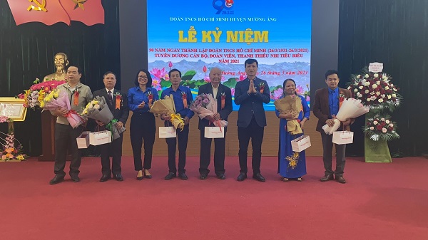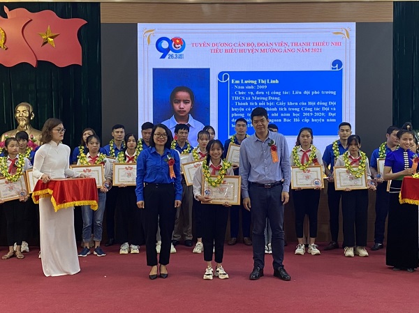 Các đồng chí cán bộ, đoàn viên, thanh thiếu nhi tiêu biểu được tuyên dương tại Lễ kỷ niệm 90 năm Ngày thành lập Đoàn TNCS Hồ Chí Minh huyện Mường Ảng năm 2021
