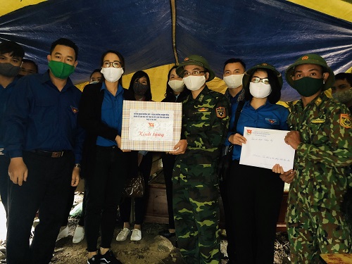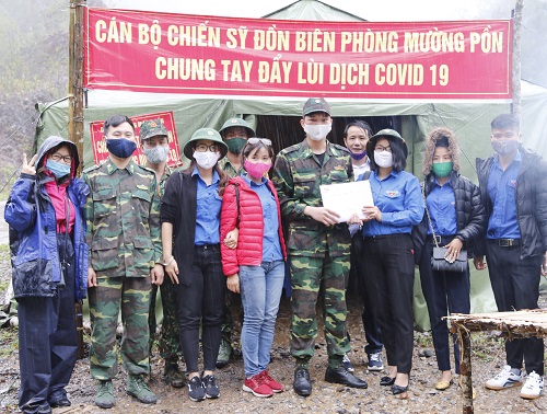 Tiếp theo hành trình, Đoàn công tác đã đến tặng quà cho Đồn Biên phòng Mường Pồn và lên chốt 88 để thăm hỏi, động viên các chiến sỹ biên phòng. Qua câu chuyện giữa cán bộ, đoàn viên, thanh niên và các chiến sỹ trong cơn mưa biên giới, chúng ta càng thấu hiểu hơn những khó khăn, gian khổ của các chiến sỹ biên phòng nơi tuyến đầu chống dịch Covid-19. Có chiến sỹ còn rất trẻ mới vào quân ngũ, có chiến sỹ mới lập gia đình, có chiến sỹ 4, 5 tháng nay chưa được về nhà, rất nhớ gia đình và người thân nhưng tất cả đều vì nhiệm vụ cao cả vẫn quyết tâm kiên cường bám trụ. Trước khi chia tay, Đoàn công tác đã trao lại những lá thư yêu thương của các em thiếu nhi huyện Mường Ảng và những món quà của các tổ chức, cá nhân với lời chúc các chiến sỹ luôn mạnh khỏe, chân cứng đá mềm, giữ vững ý chí, niềm tin nơi tuyến đầu chống dịch.