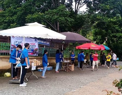 ĐVTN phát nước, đồ ăn sáng, dụng cụ học tập cho các em học sinh.