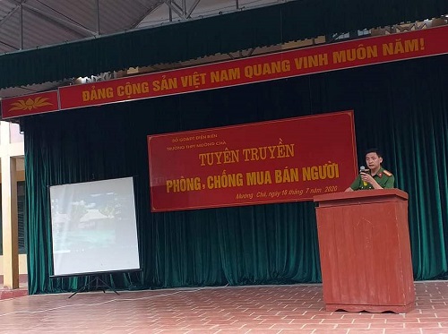 triển khai tuyên truyền cho ĐVTN. Tại buổi tuyên truyền, Đồng chí Hồ A Tủa - Đội trưởng Đội hình sự, Công an huyện Mường Chà đã tuyên truyền, phân tích những phương pháp, cách thức phòng ngừa, phát hiện, đấu tranh và tố giác các loại tội phạm, nhất là những biểu hiện, cách thức, thủ đoạn hoạt động của các đối tượng có tiền án, tiền sự, có biểu hiện hoạt động phạm tội mua bán người. Hiện nay công nghệ thông tin phát triển các đối tượng thường lợi dụng qua đó để lừa gạt các em ở vùng cao vùng xâu vùng xa trình độ nhận thức còn hạn chế để lừa bán.