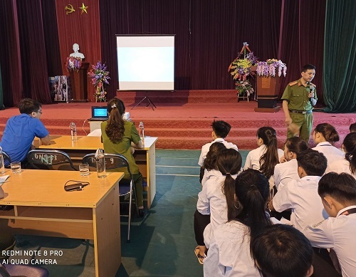 Cũng tại đây, BCH Huyện Đoàn đã định hướng cho Đoàn trường công tác tuyên truyền phòng chống tội phạm mua bán người trong thời gian tới. Trao đổi giao lưu với các em ĐVTN, học sinh thông qua các câu hỏi có nội dung xoay quanh các vấn đề liên quan đến cách thức, hành vi mà các đối tượng buôn bán người thường sử dụng để tiếp cận các em gái như: Rủ đi chơi xa, hứa tìm công việc bán hàng nhẹ nhàng, lừa kết bạn qua facebook, zalo… Qua mỗi câu hỏi, mỗi tình huống là một bài học để các em nâng cao cảnh giác tự ý thức tự bảo vệ mình trước loại tội phạm nguy hiểm này.
