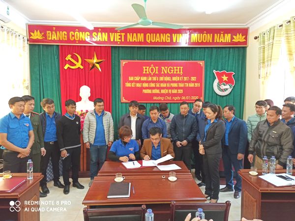 Đồng chí Đoàn Lan Phương, Bí Thư Huyện đoàn Mường Chà tặng giấy khen cho các tập thể, các nhân tại Hội nghị. Nhân dịp này, Ban Thường vụ Huyện đoàn Mường Chà tặng giấy khen cho 14 tập thể, 14 cá nhân có thành tích xuất sắc trong công tác Đoàn và phong trào thanh thiếu nhi năm 2019 và ký giao ước thi đua năm 2020.