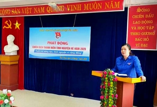 Tại buổi phát động, đồng chí Phạm Thị Huế - Bí thư Huyện đoàn phát động Chiến dịch thanh niên tình nguyện hè năm 2020 với chủ đề “Thanh niên sáng tạo, tình nguyện vì cộng đồng”. Từ ngày 19/6 - 31/8/2020, các cấp bộ Đoàn trong toàn huyện sẽ tập trung triển khai các chương trình, chiến dịch tình nguyện nhằm phát huy vai trò xung kích của đoàn viên, thanh niên tham gia các hoạt động vì cộng đồng. Tập trung cao độ cho các hoạt tình nguyện tại chỗ, huy động đông đảo các tầng lớp thanh niên tham gia thực hiện các nhiệm vụ phát triển kinh tế xã hội của địa phương cơ sở, tập trung vào giải quyết những việc mới, việc khó, với các mô hình tình nguyện sáng tạo và việc làm thiết thực đó là: hỗ trợ học sinh có hoàn cảnh khó khăn tham dự kỳ thi tốt nghiệp THPT; tổ chức các hoạt động tình nguyện chung tay xây dựng nông thôn mới; tham gia xây dựng đô thị văn minh; bảo vệ môi trường, ứng phó với biến đổi khí hậu; tham gia đảm bảo trật tự an toàn giao thông; chăm lo cho thiếu nhi; tổ chức các hoạt động sinh hoạt hè; tham gia hỗ trợ đảm bảo an sinh xã hội; tư vấn sức khoẻ, khám bệnh, cấp phát thuốc miễn phí và các hoạt động đền ơn đáp nghĩa, uống nước nhớ nguồn... Ngay sau lễ phát động, đoàn viên tham gia thực hiện các phần việc: vệ sinh môi trường, trồng khoảng 100m hoa dọc tuyến đường cạnh Huyện ủy.