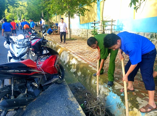 Hoạt động vệ sinh môi trường và trồng hoa của đoàn viên thanh niên huyện Tủa Chùa.