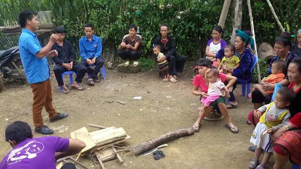 Cán bộ Đoàn xã Tủa Thàng tuyên truyền cho bà con nhân dân.