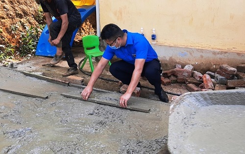 ĐVTN đổ bê tông tại khu vực làm sân chơi.