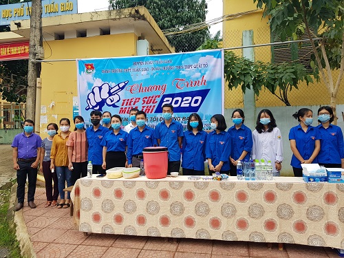 Kỳ thi THPT Quốc gia năm 2020 diễn ra trong tình hình dịch Covid -19 đang diễn ra hết sức phức tạp, nhằm đảm bảo an toàn, thiết thực trong 02 ngày diễn ra kỳ thi THPT Quốc gia năm 2020 các thành viên của đội Tiếp sức mùa thi huyện đoàn Tuần Giáo đã tiến hành tư vấn, kiểm tra thân nhiệt cho toàn bộ các thí sinh trước khi bước vào phòng thi, đồng thời đảm bảo 100% thí sinh đeo khẩu trang trong suốt quá trình thi. Trong kỳ thi THPT Quốc gia Ban Thường vụ huyện đoàn cùng các nhà hảo tâm đã ủng hộ cho các thí sinh hơn 300 xuất ăn, gần 1000 khẩu trang y tế. 22 bình nước lọc đặt tại khu vực thi, hàng trăm đồ dùng học tập...Tổng trị giá gơn 20 triệu đồng. Chương trình đã thu hút được đông đảo các thầy cô giáo, các nhà mạnh thường quân chung tay giúp đỡ các thí sinh.
