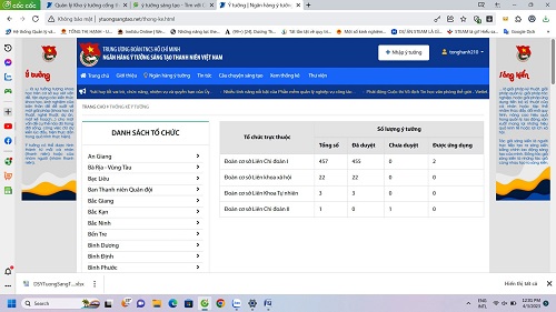 Thống kê ý tưởng sáng tạo trên ngân hàng ý tưởng sáng tạo của Trung ương Đoàn.