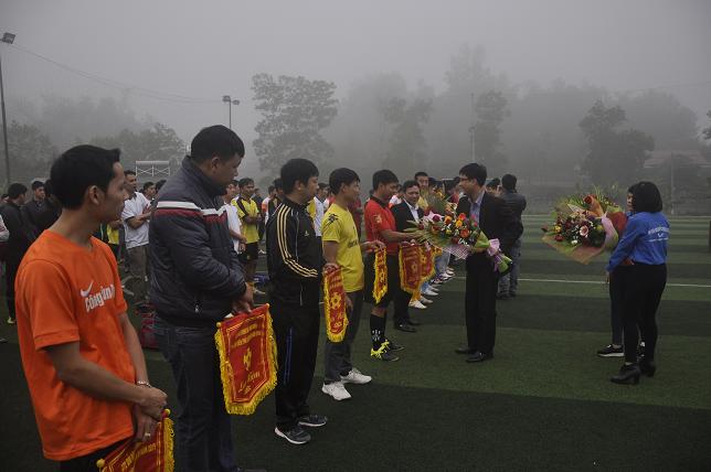 thành phố Điện Biên Phủ tặng hoa và cờ lưu niệm cho các đội bóng tham gia