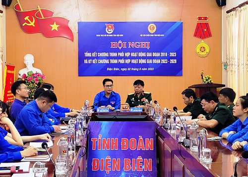 Tỉnh đoàn Điện Biên và Hội CCB tỉnh ký kết chương trình phối hợp giai đoạn 2023-2028 Cũng trong Chương trình, tại điểm cầu tỉnh Điện Biên, Tỉnh đoàn và Hội Cựu Chiến binh tỉnh Điện Biên đã cùng nhau ký kết Chương trình phối hợp “Tăng cường bồi dưỡng lý tưởng cách mạng, đồng hành với thanh niên khởi nghiệp, lập nghiệp, xung kích xây dựng và bảo vệ Tổ quốc giai đoạn 2023-2028”. Thông qua việc ký kết góp phần nâng cao nhận thức, trách nhiệm của cán bộ, đoàn viên và hội viên Cựu Chiến binh về công tác phối hợp, góp phần thực hiện thắng lợi nhiệm vụ chính trị, xây dựng tổ chức Đoàn, tổ chức Hội vững mạnh toàn diện; tăng cường củng cố mối quan hệ gắn bó giữa Đoàn Thanh niên và Hội Cựu Chiến binh các cấp, các tổ chức chính trị - xã hội, cơ quan đoàn thể và nhân dân.../.