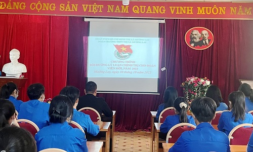 Quang cảnh lớp bồi dưỡng chính trị cho đoàn viên mới tại cơ sở. Tính đến nay, 100% đoàn viên mới kết nạp tại các Đoàn cơ sở đã tổ chức học tập, quán triệt đầy đủ các bài lý luận chính trị cho đoàn viên mới (đạt 100%) được học tập, tuyên truyền 04 bài học lý luận chính trị (sửa đổi), 04 tiêu chí giá trị hình mẫu thanh niên Việt Nam thời kỳ mới và bồi dưỡng, giáo dục tư tưởng, đạo đức cách mạng theo quy định. Có thể nói, việc học tập lý luận chính trị được xem như là một phương thức để mỗi đoàn viên tự hoàn thiện bản thân, trang bị thêm lý luận, có bản lĩnh chính trị vững vàng, trên cơ sở đó làm tốt vai trò, trách nhiệm của người đoàn viên thanh niên Cộng sản Hồ Chí Minh./.
