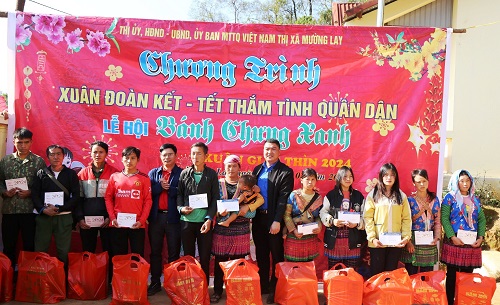 Trao quà cho nhân dân bản Hô Nậm Cản, xã Lay Nưa. Hoạt động được tổ chức để tạo nguồn kinh phí, kêu gọi tấm lòng các tổ chức, tập thể, nhà hảo tâm, tổ chức tặng quà quà cho các cựu thanh niên xung phong có hoàn cảnh khó khăn, bị bệnh, ốm đau dài ngày; ĐVTN, học sinh, trẻ em có hoàn cảnh khó khăn, mồ côi, khuyết tật nặng, bị bệnh hiểm nghèo; người già neo đơn, hộ gia đình có hoàn cảnh đặc biệt khó khăn. Đại diện lãnh đạo Thị đoàn, các tổ chức, tập thể, nhà hảo tâm, các đồng chí ĐVTN đã đến thăm hỏi, động viên, trực tiếp trao 70 suất quà, với tổng giá trị trên 21.000.000 đồng; phối hợp với phòng Lao động, Thương binh và Xã hội, Hội Chữ Thập đỏ, BCH Quân sự thị xã kêu gọi, tổ chức trao 76 xuất quà, 76 cặp bánh chưng cho 76 hộ dân bản Hô Nậm Cản, xã Lay Nưa, với tổng giá trị 45.600.000đ; Liên đội các trường học trên địa bàn thị xã tổ chức chương trình “Xuân yêu thương, cùng bạn nghèo vượt khó” trao 67 xuất quà cho 67 đội viên, thiếu niên, nhi đồng, học sinh có hoàn cảnh khó khăn, với tổng giá trị trên 9.600.000đ.
