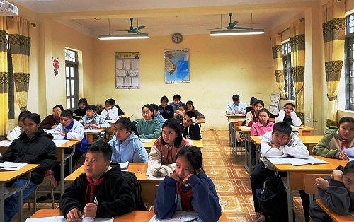 Treo bản đồ Việt Nam trong lớp học tại Đoàn trường THPT thị xã.