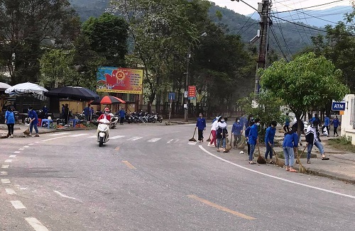 Hoạt động ra quân vệ sinh môi trường, thực hiện phong trào chợ giảm tải túi nilon.