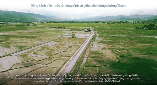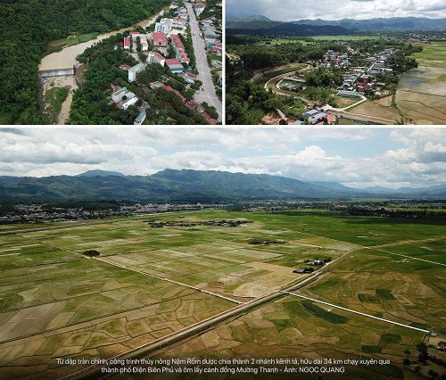 Theo đồng chí Phó chủ tịch Lê Văn Quý, khi công trình thủy nông Nậm Rốm đi vào hoạt động, với địa thế giáp chân núi, có cao độ cao hơn mặt bằng của cánh đồng Mường Thanh nên hai kênh tả - hữu dài hơn 30km ôm trọn cánh đồng Mường Thanh đã cung cấp nước tưới rất hiệu quả (chủ yếu là tự chảy). Đặc biệt, từ năm 2004, hệ thống kênh mương được bê tông hóa, dần hoàn thiện, kết hợp với việc xây dựng và đưa vào sử dụng, khai thác một số hồ chứa lớn trên địa bàn, nên diện tích tưới của Công trình đại thủy nông Nậm Rốm được nâng cao, từ 2.400 ha (năm 1984) lên tổng diện tích lúa 2 vụ hơn 7.000ha. Công trình thủy nông Nậm Rốm với 2 tuyến kênh tả, hữu không chỉ cung cấp nước tưới mà quan trọng nhờ nó mà "văn minh lúa nước" đã đến được với người dân Điện Biên. Cũng nhờ công trình mà nay Điện Biên có những làng của cựu TNXP ở lại mang tên "làng Thái Bình", "làng Hưng Yên"… Nhờ công trình mà nhiều xã thuộc khu vực lòng chảo Mường Thanh đã phát huy thế mạnh kinh. Lúa trồng ở Mường Thanh cho năng suất cao, chất lượng gạo tốt tạo thương hiệu.