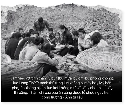 "Để bước đầu tạo dựng hình hài của "mạch sống Điện Biên", công việc của chúng tôi làm đầu tiên là xây dựng đập chính dâng nước. Khó khăn nhất là phải ngăn dòng, chặn đứng dòng chảy cả một dòng sông Nậm Rốm với sức nước mạnh và hung hãn, trong khi việc thi công lại hoàn toàn thô sơ, thủ công và liên tục bị bom đạn của kẻ địch bắn phá. Doanh trại của các tổ, đội phải sơ tán vào rừng khu vực bên trong hồ Huổi Phạ (suối Trời) để tránh máy bay, pháo sáng của địch oanh tạc. Cuộc sống sinh hoạt hằng ngày của mọi người thiếu thốn vô cùng, khi cơm không đủ ăn, nước không đủ uống, mùa đông của núi rừng Tây Bắc lạnh đến nhức buốt chân tay. Liên tục nhiều tháng liền trong năm, anh em TNXP phải ăn măng đắng, rau rừng và ngô (bắp). Tuy nhiên, lực lượng tham gia xây dựng công trình đã quyết tâm thực hiện khẩu hiệu "ba bù" (bù mưa, bù ốm, bù phòng không) để tăng ca, đẩy giờ làm việc lên đạt từ 10 đến 12 giờ lao động/ngày. Để làm đập chính, thời điểm đông nhất có tới trên 500 TNXP. Sau gần 3 năm mới xong cái đập chính", ông Chính bồi hồi nhớ lại.