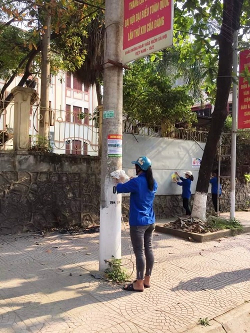 ĐVTN bóc, xoá quảng cáo, rao vặt khu vực trước cổng trường.