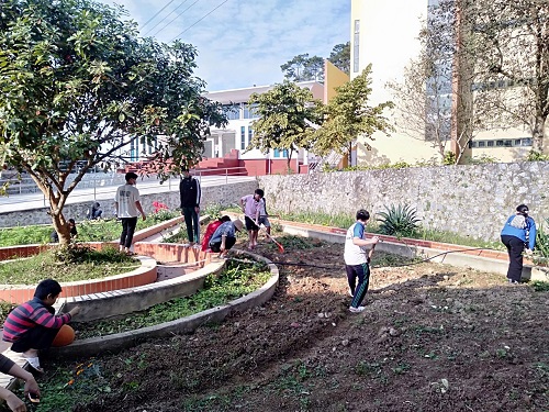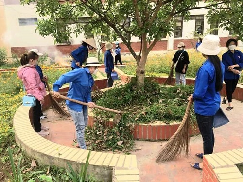 Tiếp theo, ngày 20/3/2022, Đoàn trường tổ chức cho 45 ĐVTN nhặt cỏ, vun xới, chăm sóc hoa, cây cảnh, quét sạch rác đảm bảo sạch sẽ ở lối đi lại tại Vườn cây Thanh niên và con đường Thanh niên sư phạm. Ngoài ra, Đoàn trường còn phát động tới toàn bộ ĐVTN là cán bộ giảng viên thực hiện vệ sinh phòng làm việc, bài trí cây cảnh nhỏ tại góc làm việc và trang trí trong phòng hài hòa và phù hợp, tạo không gian sạch sẽ thông thoáng.
