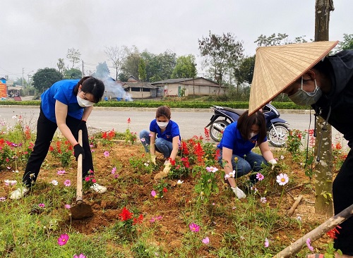 ĐVTN huyện Mường Ảng thực hiện tuyến đường hoa.