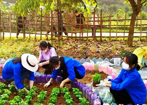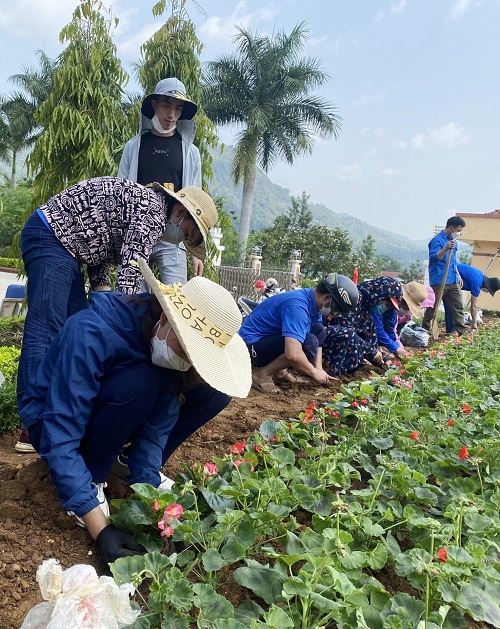 Cùng với đó, các cấp bộ đoàn đã tổ chức nhiều hoạt động phát huy tinh thần sáng tạo, tình nguyện của thanh niên tham gia xây dựng nông thôn mới và đô thị văn minh như: vẽ tranh tường cổ động chào mừng kỷ niệm 15 năm thành lập huyện; làm đất, trồng, chăm sóc bồn hoa, cây cảnh trên các tuyến đường hoa nông thôn, tuyến đường hoa 42m, 27m, Trung tâm Hội nghị - Văn hóa huyện; vệ sinh môi trường đường làng, ngõ xóm, đoạn đường thanh niên tự quản, vỉa hè, khuôn viên cơ quan, đơn vị, trường học; tái chế vỏ chai nhựa cũ để làm bồn hoa; hỗ trợ chuẩn bị cơ sở vật chất để tiêm phòng Covid-19… Các hoạt động đã thu hút gần 1.000 đoàn viên, thanh thiếu nhi tham gia.
